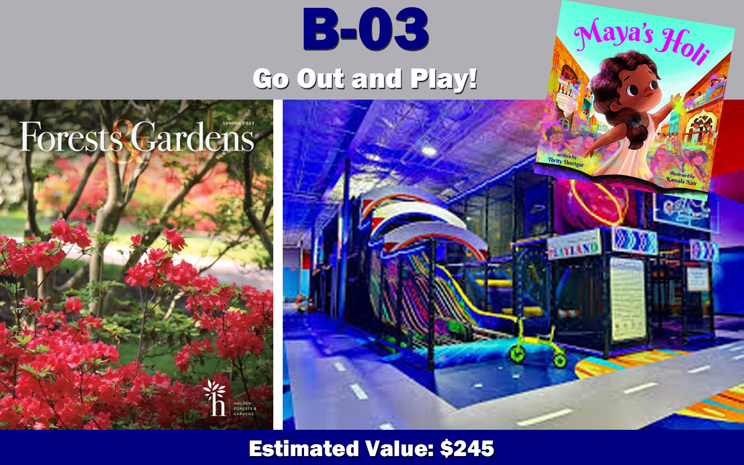 Donated by: Holden Forests & Gardens, Meijer's Fairfax Market, D&R Playland Brooklyn, Chick fil-A Parma, Judi and Chris Engel, and Thrity Umrigar
