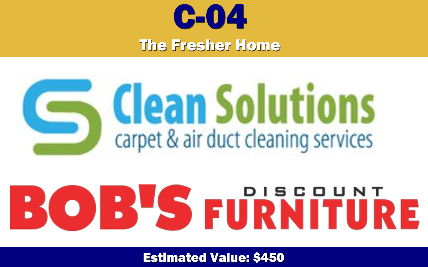 Donated by: Clean Solutions and Bob's Discount Furniture