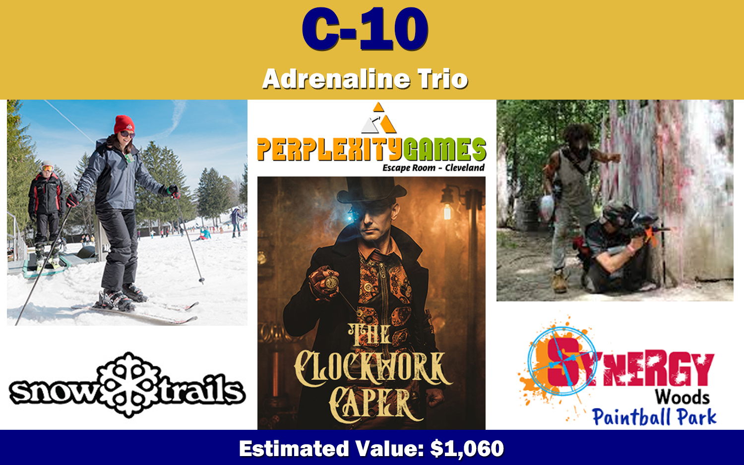Donated by: Adrenaline Monkey Cleveland, Meineke Parma, Red Crab Cleveland, Build The Pho North Olmsted, and Let's Roam
